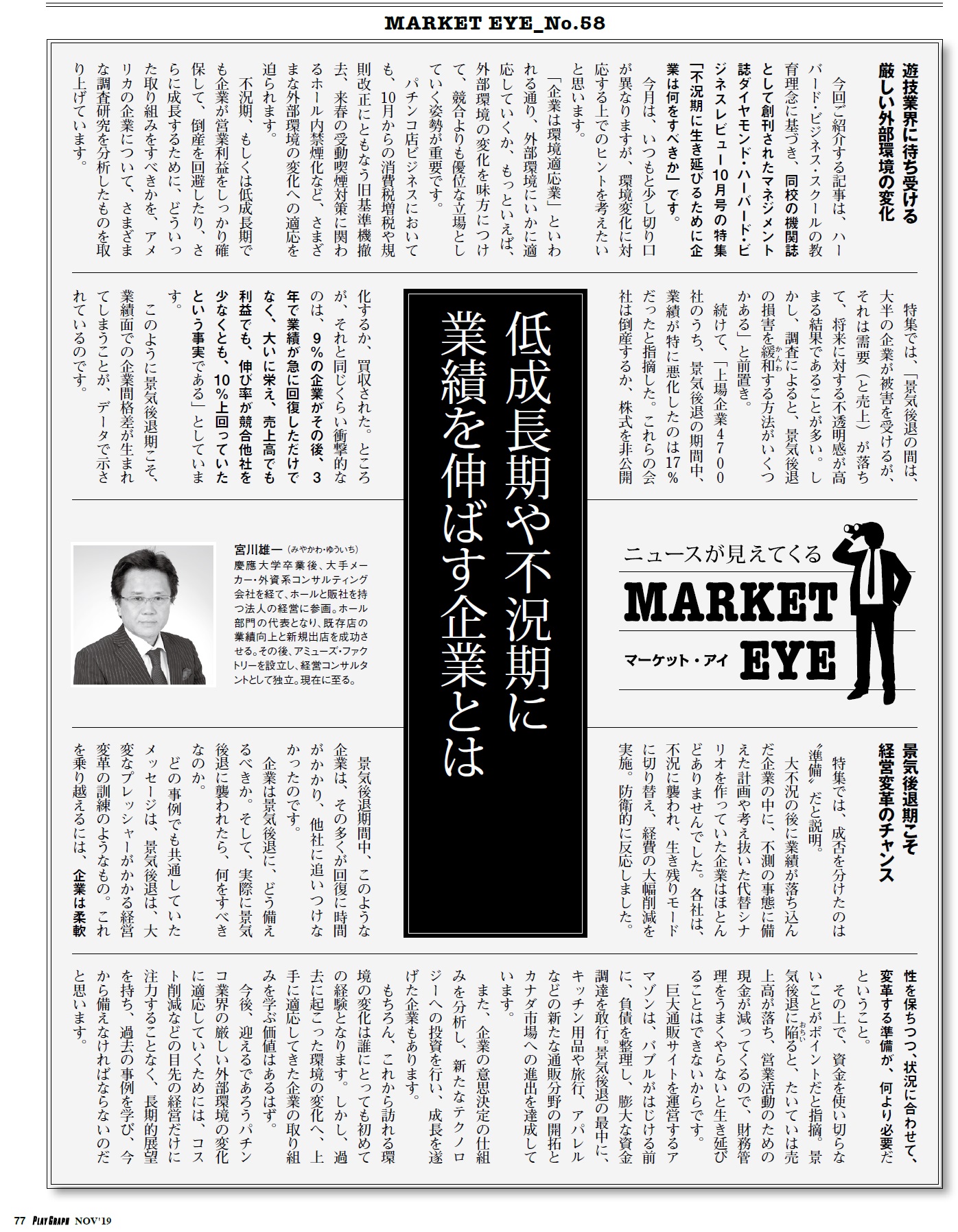 2019年11月号掲載:低成長期や不況期に業績を伸ばす企業とは